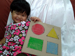 Untuk mengalihkannya, Bunda buatkan puzzle yang super sederhana untuk Kakak Salma. "Puzzle Bentuk Dasar"